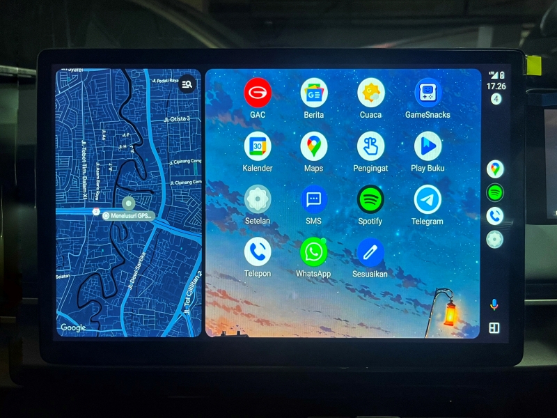 Dengan integrasi penuh Android Auto, pengguna dapat menikmati navigasi real-time melalui Google Maps, mengontrol musik atau podcast favorit dari aplikasi seperti Spotify dan YouTube Music, serta melakukan panggilan atau mengirim pesan dengan perintah suara melalui Google Assistant.