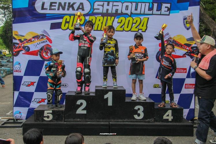 “Event pertama kemaren di Seri 1 LENKA Shaquille Cup Prix 2024, sempat pole posisi di Kelas Beginner 4-7 Tahun Group B tapi finish di urutan 3,” ujar Faldy saat berbincang dengan Autoride melalui sambungan WhatsApp.