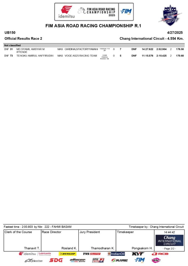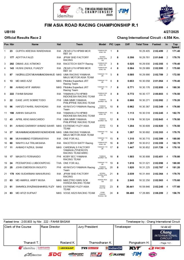 Hasil Race 2 Kelas UB150 – Putaran 1 ARRC Thailand 2025: