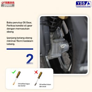 Karena memiliki fungsi penting, maka pastikan memeriksa kondisi oli mesin dan oli gear maksimal setiap kelipatan 3.000 km atau 3 bulan sekali. Kemudian wajib mengganti gear oil maksimal setiap kelipatan 12.000 KM atau 12 bulan sekali untuk mendukung kinerja sepeda motor tetap optimal dan mencegah komponen gear cepat aus. (Maston/Foto: YIMM)