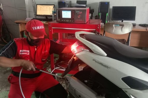 Berdasarkan informasi yang Autoride himpun dari salah satu diler Yamaha di Jakarta, terdapat beberapa langkah yang dilakukan. “Pertama, memasangkan alat pendeteksi gas pada knalpot. Kemudian, kendaraan diparkir di tempat yang datar. Hal selanjutnya, pastikan saat pengecekan gas buang (knalpot) tidak bocor,” ujar Gendro, Kepala Bengkel Yamaha Era Motor Pasar Minggu saat dihubungi Autoride.