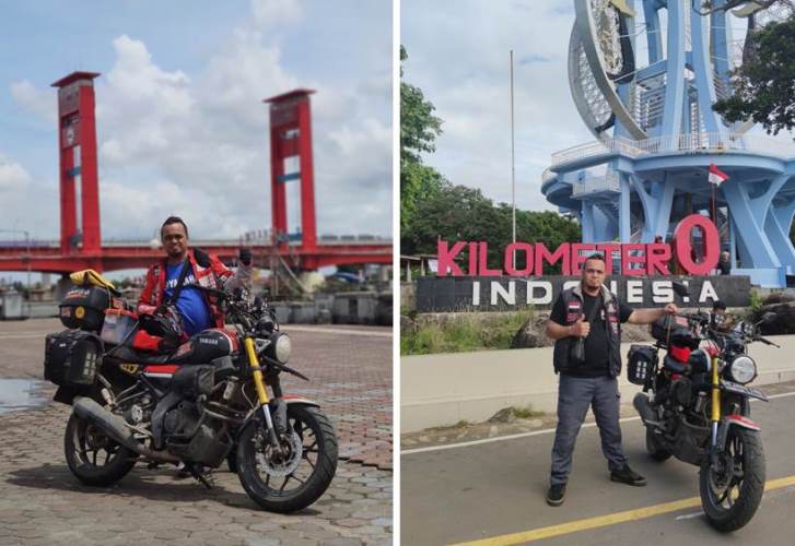 Bikers asal Bali Djoe Avarell yang juga Ketua Umum Nasional (Ketumnas) XSR Brotherhood Indonesia (XBI) melakukan touring ke Sumatera menggunakan Yamaha XSR 155.
