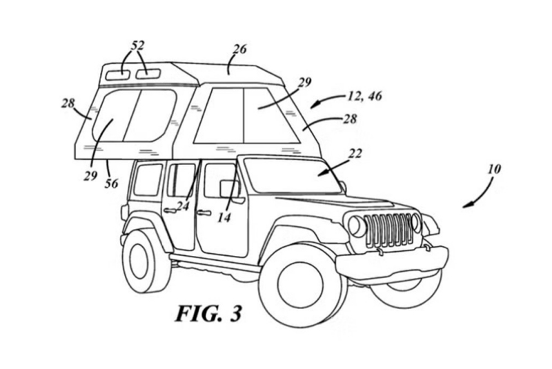 Sejauh ini, sebagian besar tenda atap dari aftermarket atau pihak ketiga memerlukan perangkat keras tambahan seperti rak atap tambahan. Sementara tenda yang ditunjukkan dalam paten baru milik Jeep memiliki solusi yang lebih elegan dengan dibaut ke bagian atas atap, tenda tersebut menggantikan panel atap Wrangler yang dapat dilepas dan menggunakan kembali titik pemasangannya.