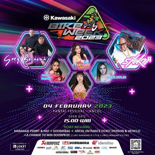Kawasaki Bike Week 2023 siap digelar di Pantai Festival Ancol, Jakarta Utara. Event ini akan berlangsung pada hari Sabtu, 4 Februari 2023.
