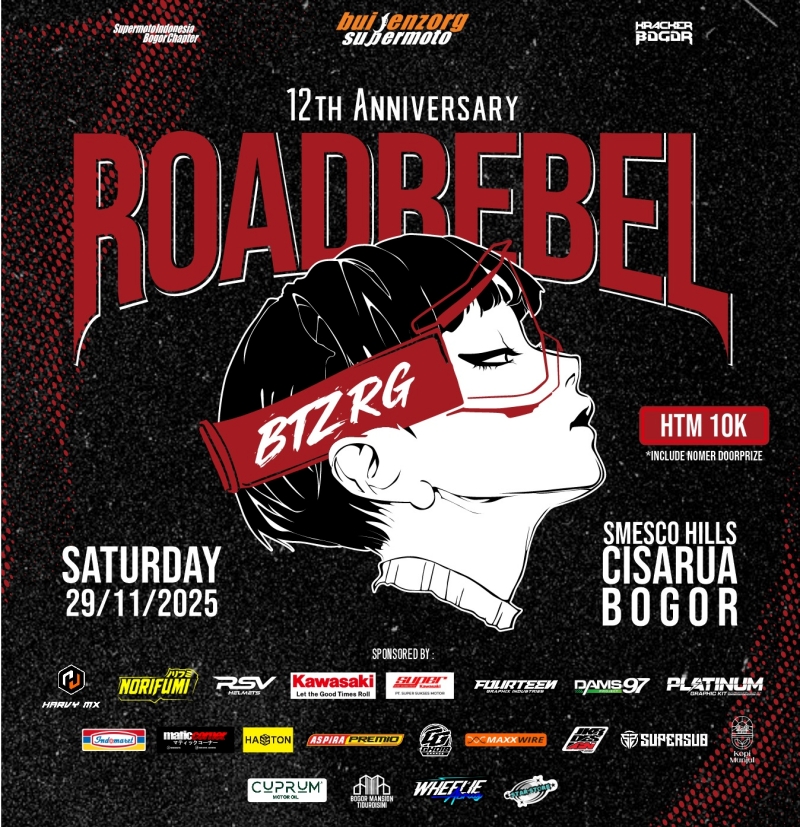 Dalam rangka untuk menyambut ulang tahunnya yang ke-12 tahun, Komunitas Buitenzorg Supermoto bakal menggelar acara dengan tema “ROAD REBEL”.