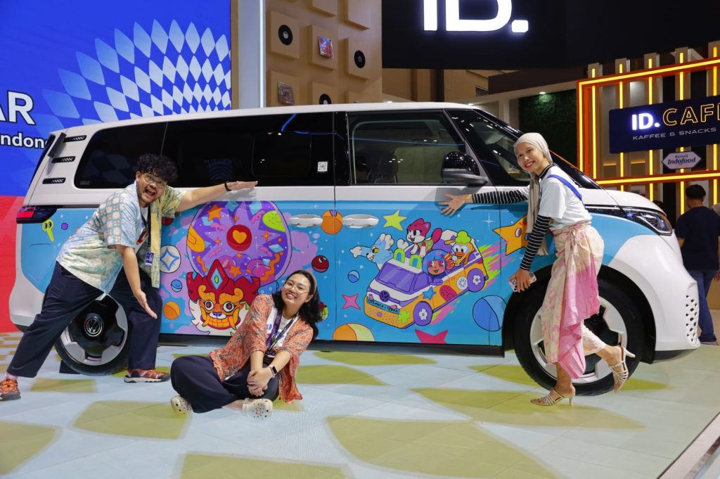 Hadir pada seremoni kedua IP Creator atau para seniman lokal binaan EKRAF, yaitu Beemala dan Tenka Street, serta brand stiker premium MAXDECAL — ketiganya menjadi aktor utama di balik desain eksterior VW ID. BUZZ, kendaraan listrik ikonik Volkswagen yang kini menjelma sebagai kanvas seni bergerak di tengah hiruk pikuk industri otomotif.