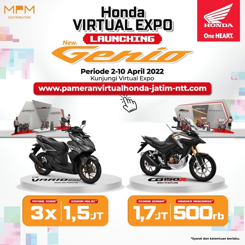 Autoride – PT. Mitra Pinasthika Mulia (MPM Honda Jatim) selaku distributor sepeda motor Honda hadirkan Virtual Exhibition Special Launching New Honda Genio yang diadakan pada periode 2-10 April 2022, pengunjung bisa mengikuti Virtual Exhibition ini dengan langsung meng-aksesnya melalui gadget di www.pameranvirtualhonda-jatim-ntt.com.
