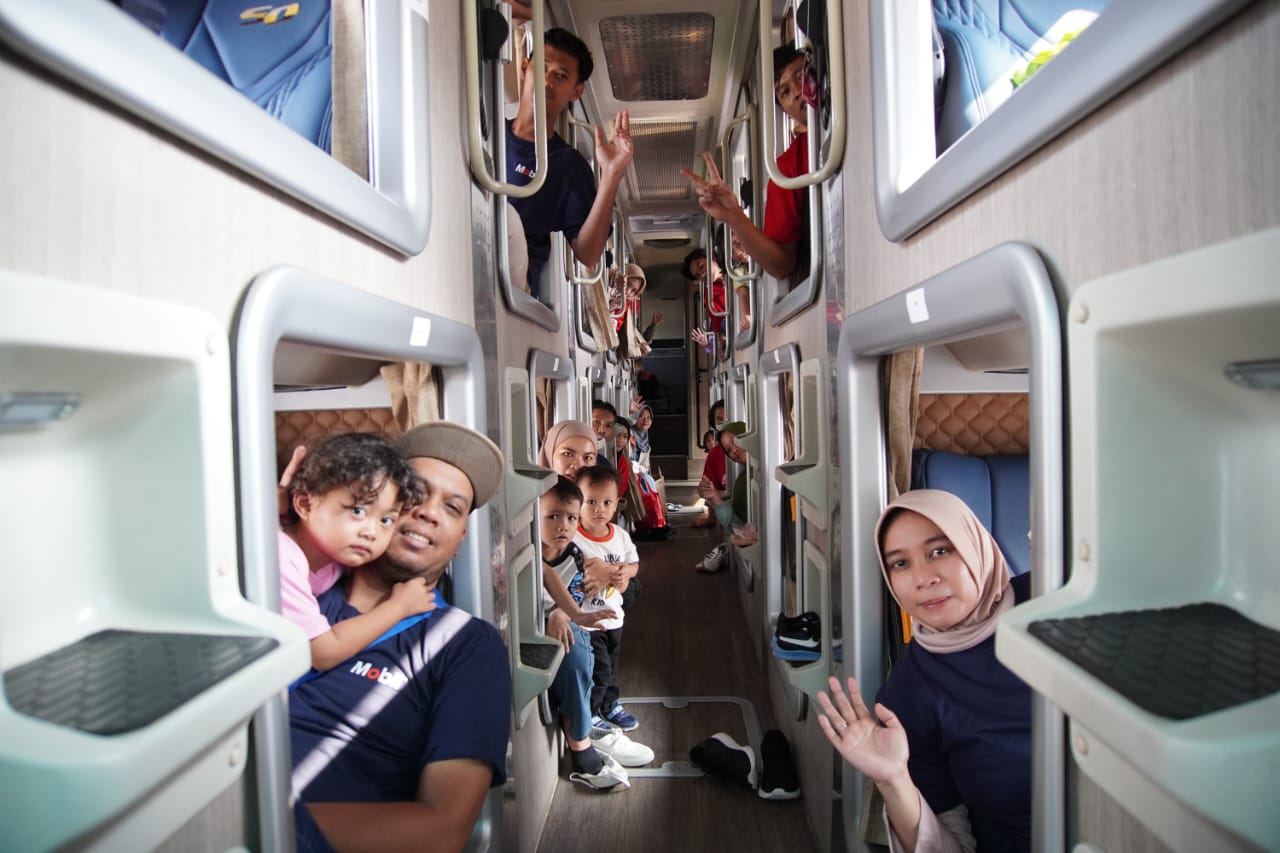 PT EMLI juga memberikan pengalaman yang berbeda pada program mudik tahun ini, dengan menghadirkan akomodasi bus bertipe premium seperti sleeper bus serta bus bertipe leg rest yang bikin para mekanik pasti makin nyaman dalam perjalanan menuju kampung halaman.