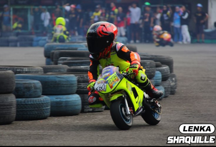 “Tanpa ikut sekolah balap. Kendalanya sulit mengerti arahan orang dewasa, misal cara riding style,” papar Falah yang juga punya hobi balap road race. Bahkan pernah aktif di sekitar tahun 2000an dan vakum tahun 2014 karena menikah.