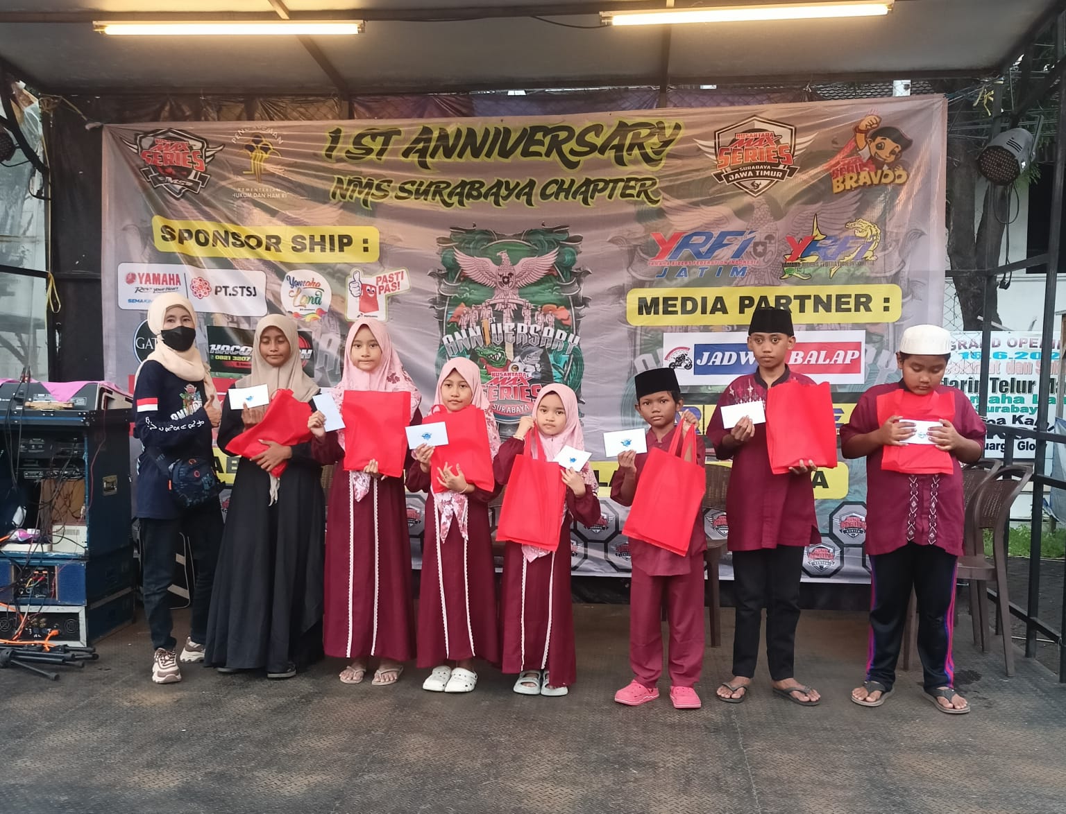 Beragam susunan acara juga disiapkan panitia untuk menambah kemeriahan event. Ada agenda bakti sosial (baksos) dengan memberikan santunan untuk anak yatim, sambutan sponsor perwakilan dari ban FDR, games dan hiburan live music. Serta agenda utamanya afalah potong tumpeng sebagai simbol dan rasa syukur telah genapnya usia 1 tahun NMS Surabaya.
