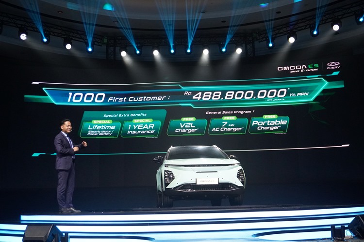 Chery OMODA E5 dijual seharga Rp. 498.800.000. Harga ini sudah termasuk Pajak Pertambahan Nilai bersubsidi sesuai kebijakan pemerintah Indonesia untuk kendaraan listrik yang sudah memenuhi syarat TKDN sebesar 40%. CSI juga mengumumkan harga spesial untuk seribu konsumen pertama, yaitu Rp 488.800.000. (Maston/Foto: CSI)