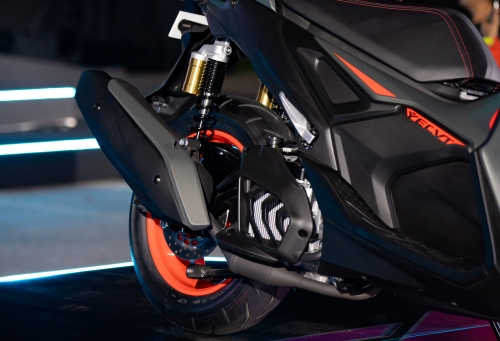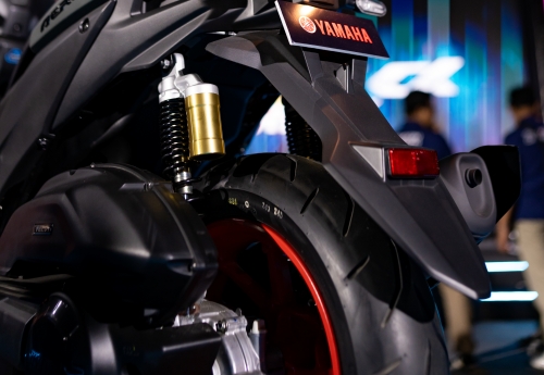 Area kaki-kaki pada Aerox Alpha juga turut mendapatkan sentuhan pembaruan guna meningkatkan stabilitas berkendara layaknya motor sport. Pada bagian depan, inner tube suspensi dibuat lebih besar dari sebelumnya berdiameter 26 mm menjadi 30 mm. Tidak hanya itu, pada suspensi bagian belakang pun juga sudah menggunakan rear sub-tank* atau tabung peredam yang terpasang di kedua batang suspensi.