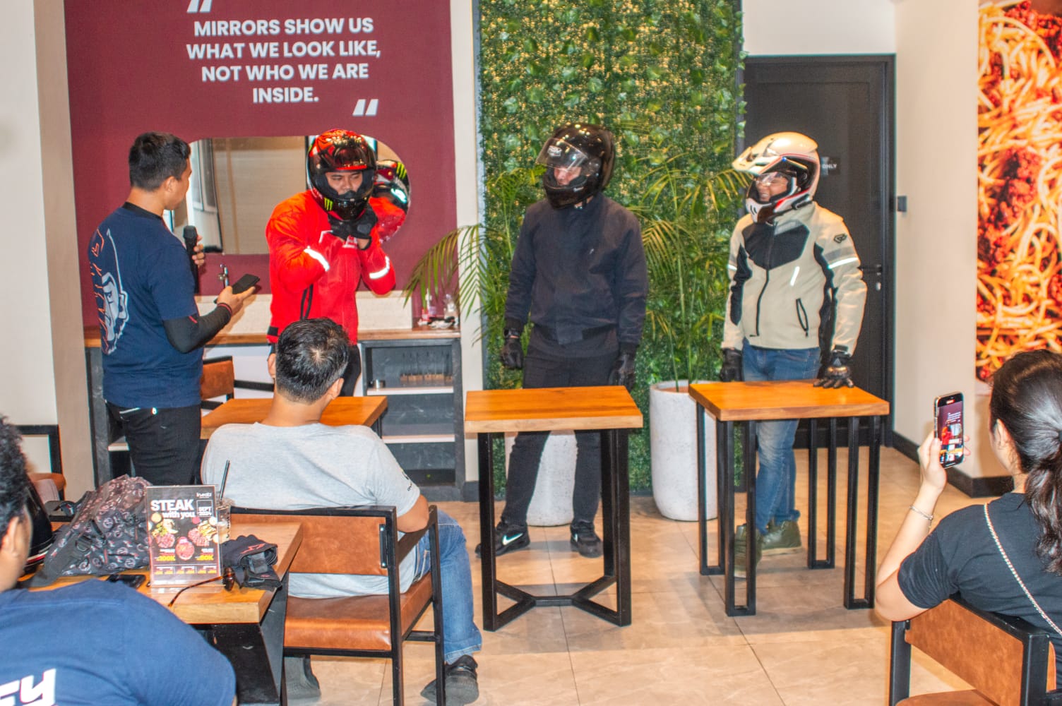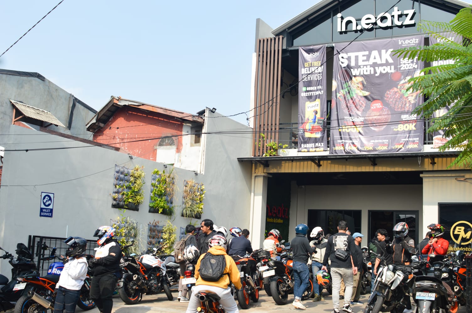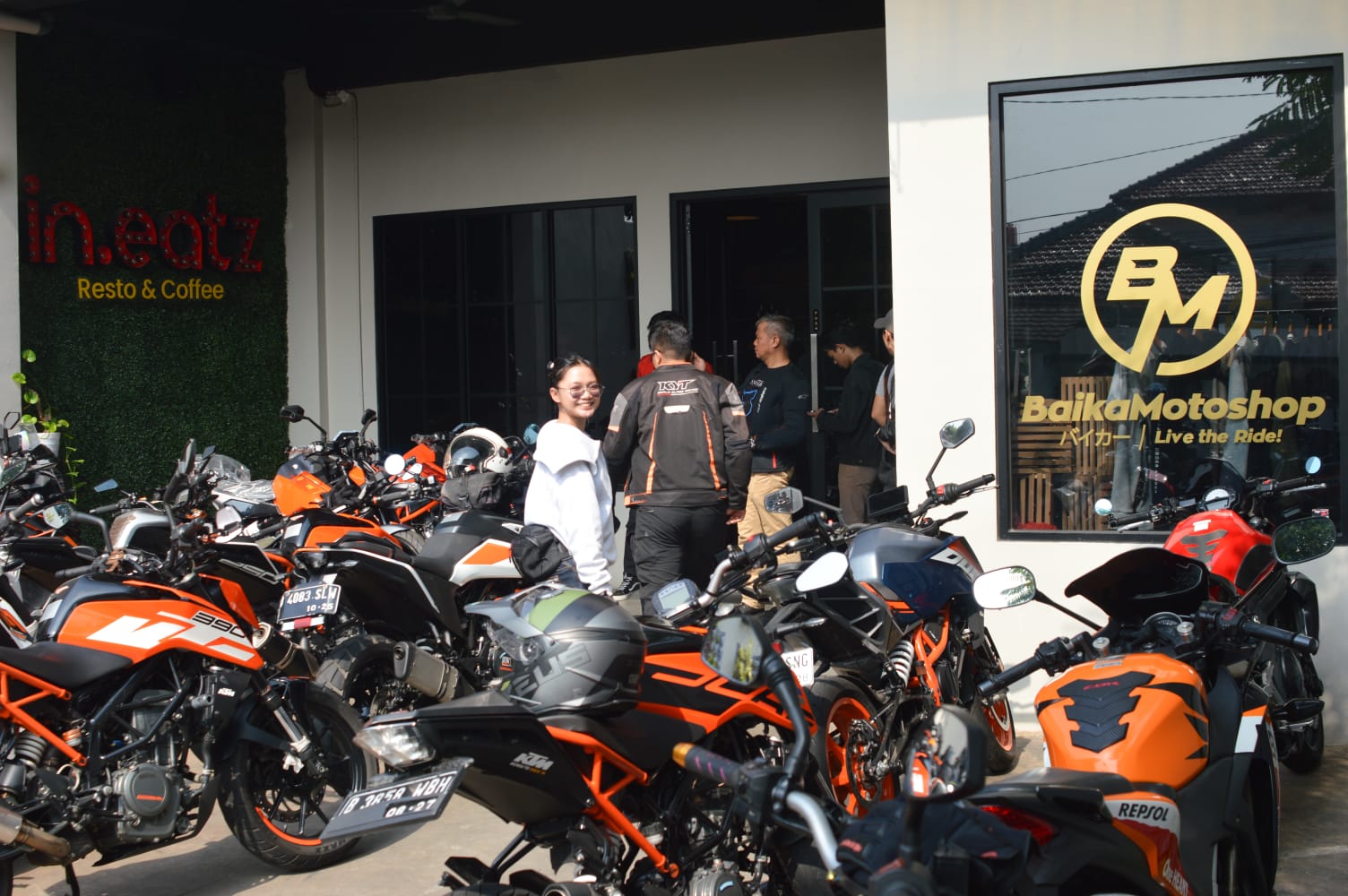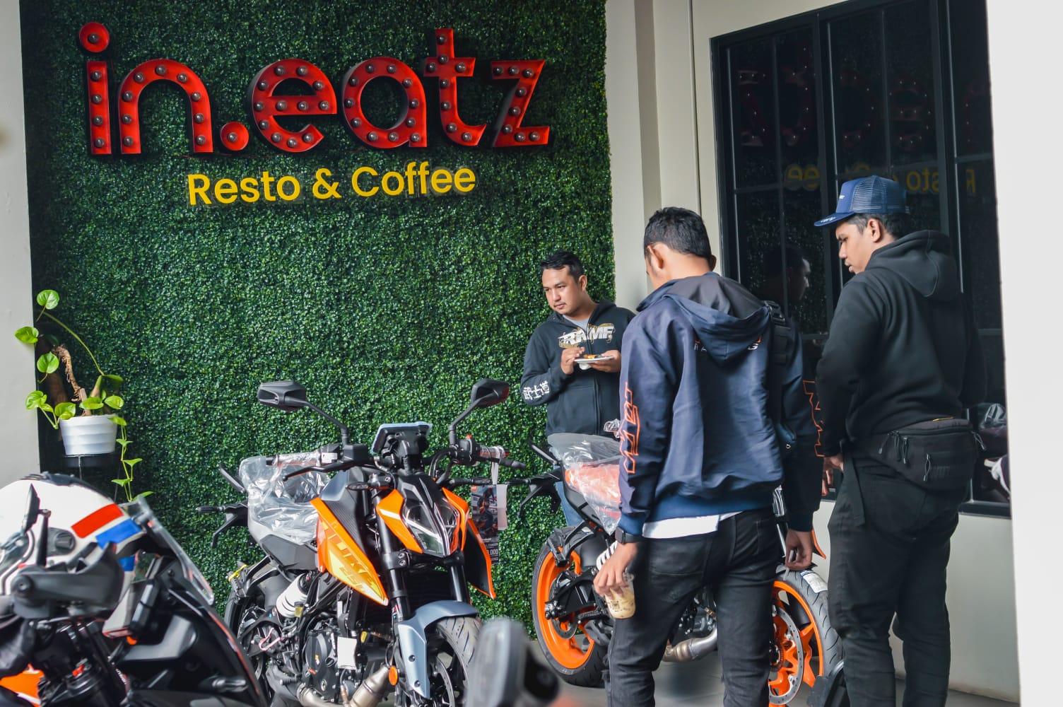 Kedatangan para bikers disambut langsung oleh Om Nur, pemilik Baikamotoshop, dan Om Rick selaku pemilik In.Eatz. para bikers pun langsung dijamu oleh team In.Eatz Resto dengan menu hidangan sarapan pagi dan juga makan siang.