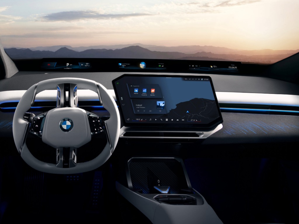 Layar sentuh 17,9 inci di bagian tengah menjalankan Sistem Operasi BMW X, sementara jendela besar dan atap kaca panorama menjadi opsional untuk menambah kesan lapang dalam kabin.