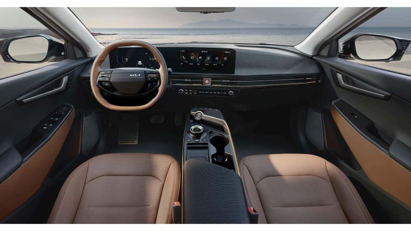 Di bagian dalam, EV6 terus berfokus pada pengalaman kabin yang berteknologi modern dan terkini. Dasbornya memiliki sepasang layar 12,3 inci, yang kini dipasangkan dengan sistem Kia Connect 2.0 terbaru. Setir kemudi datar dan konsol tengah yang didesain ulang menyempurnakan kesan premium.