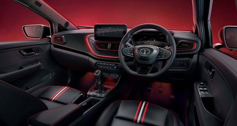 Varian Altroz Racer juga mendapat jok serba hitam baru dengan jahitan kontras merah, garis-garis merah dan putih, dan emboss Racer pada sandaran kepala.